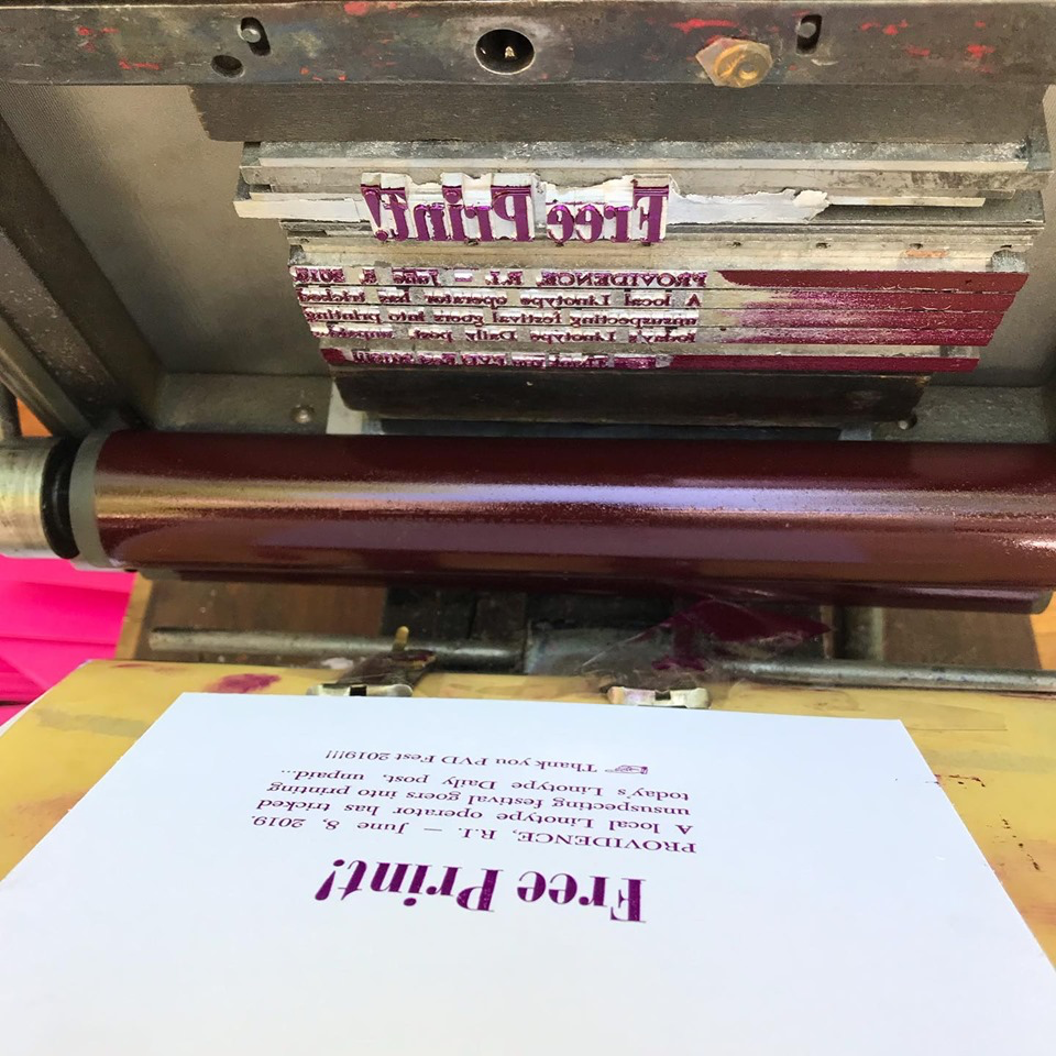 Day 100! Thank you for the free labor, Providence (even the Mayor helped!) especially @craftland !!! Cast in 12pt Caledonia and 48pt Bodoni Campanile, printed on a 5x8 Kelsey on the streets of Providence, RI.
