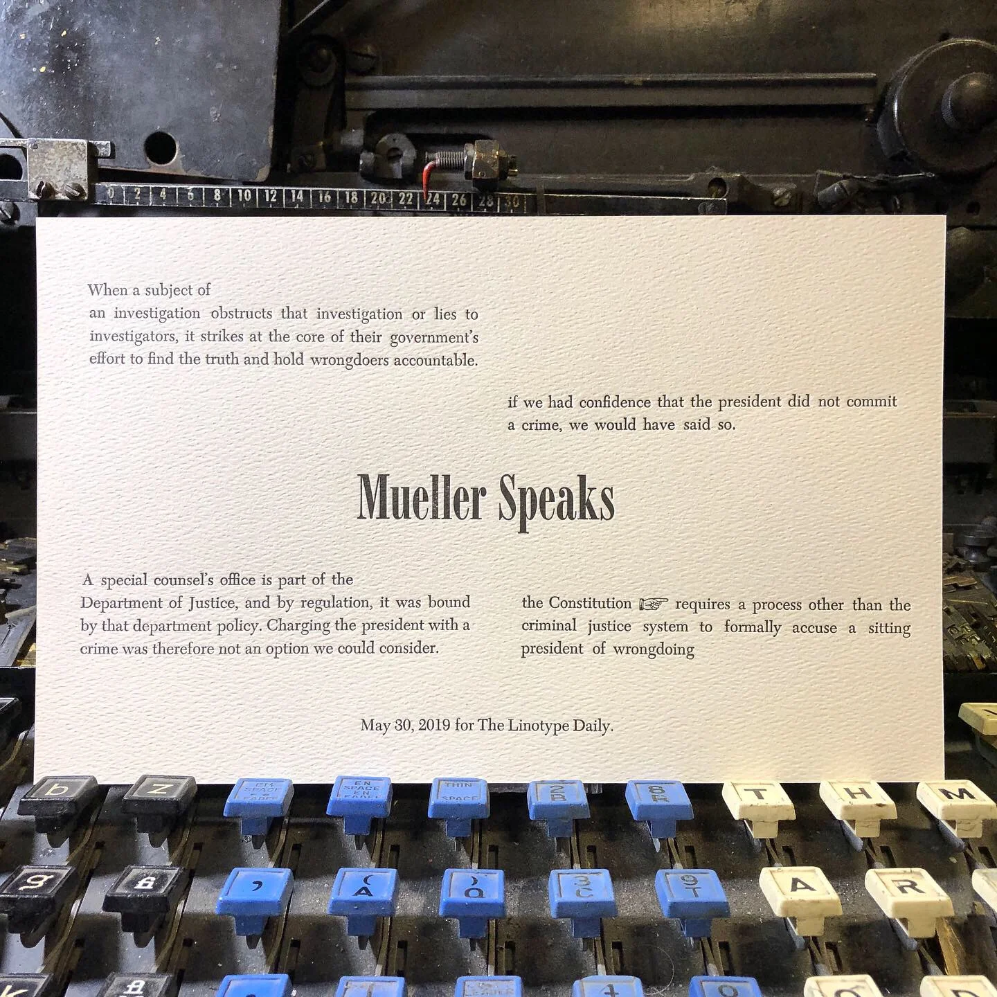 Day 91. Mueller speaks, revisited. Cast in 12pt Caledonia and 48pt Bodoni Campanile